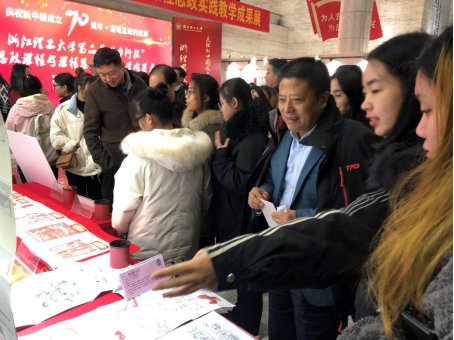今年恰逢中华人民共和国成立70周年,为此球盟会专门在全校范围内组织全体师生围绕着“庆祝新中国成立70周年·浙理思政的故事”主题展开实践教学。全体师生共同努力,携手并进,从众多的成果中优选了30组成果进行集中展示。各团队都做了充分认真的准备,全方位、多角度地展示了自己的创作成果。同学们充分发挥自身的专业特长和优势,紧紧围绕思政课的主题,充分发挥自己的想象和创意,创作了一件件既精致美观,又富有深刻的内涵的作品,深深感染着着每一位现场观众。“为员工点亮理想的灯,照亮前行的路,是我们组织活动的初心与使命;实现思政课程与课程思政的有机融合,落实立德树人高等教育根本任务,是我们组织活动的宗旨和目标。”负责活动组织策划的球盟会副经理肖香龙教授如是说。
