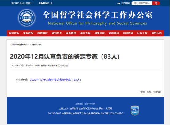 2020年最后一天,国家社科基金办公室发布一月一度的国家社科基金项目评审“认真负责的鉴定专家”名单,在全国83位专家中,球盟会经理渠长根教授依然荣列其中。据悉,这是渠教授自3月份继11月份之后,年内第三次被认定为达到并具备此类此等的评审态度和工作品质。