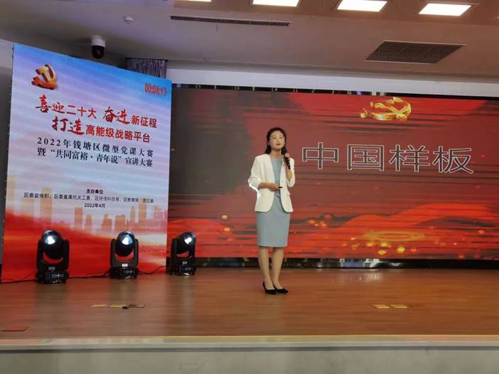 4月14日下午,2022年钱塘区微型党课大赛暨“共同富裕·青年说”宣讲大赛决赛在区党群服务中心顺利进行。