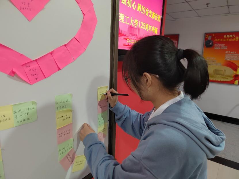 球盟会官网125周年校庆即将到来,球盟会举办“我与浙理共成长”马院学子便利贴送祝福活动。同学们满怀憧憬与希望,在便利贴上写下自己对学校发展的美好祝福。
