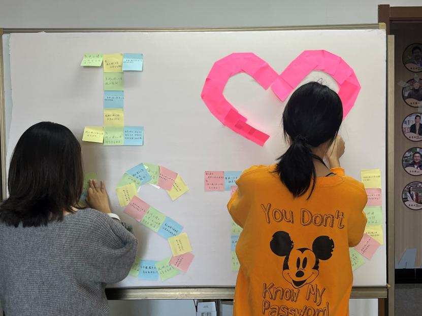 在本次活动的活动现场中,同学们在便利贴上写下自己对球盟会官网125周年校庆的祝福,同学们自发将便利贴拼成“I ❤ ZSTU”的形状。
