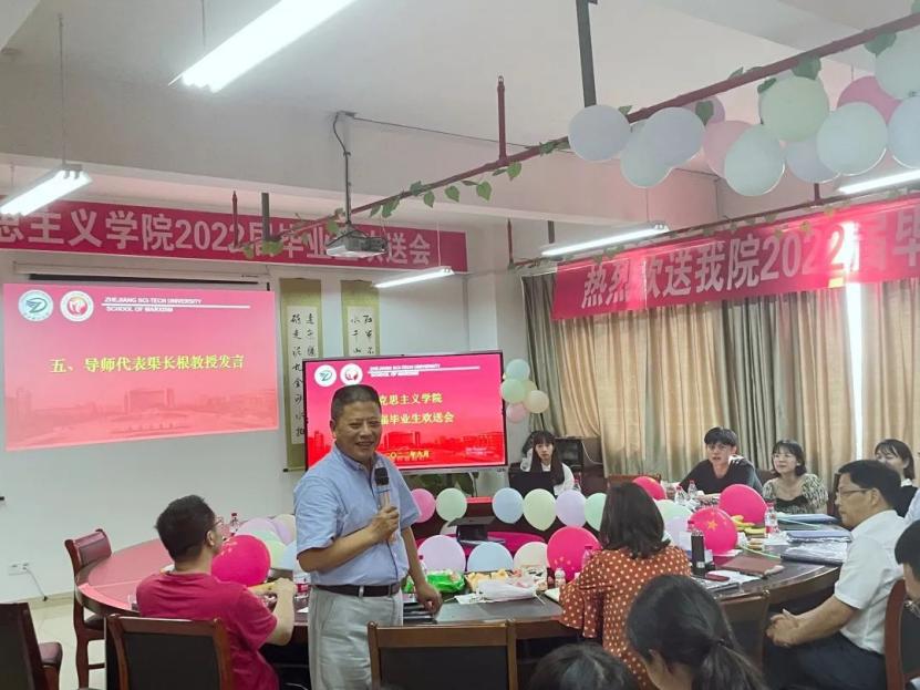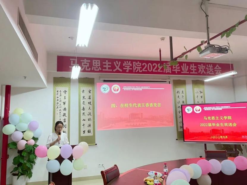 毕业欢送会在《启梦于此,又至四方》的纪念视频中拉开序幕,视频呈现的画面让老师和同学们再一次回顾在“浙理”三年的美好时光,视频中导师们的谆谆寄语和殷殷嘱托承载着太多的祝愿和希冀。